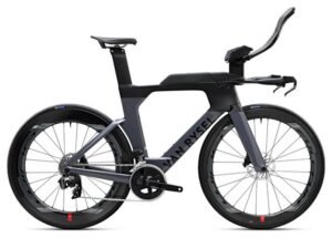 Zone de vitesse : la moitié avant du vélo, avec son tube de direction ultra profond mais étroit, son tube diagonal enveloppant et sa fourche à ailettes.