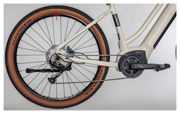 Le Bicyklet Béatrice est un vélo fitness électrique au style remarquable, à la fois polyvalent et confortable, doté de composants fiables. Son cadre en aluminium, à la fois robuste et facile à maîtriser, accueil une batterie de 500 Wh, ainsi que la motorisation Bosch Performance Line, associée à un écran Bosch Kiox. La commande déportée séparée permet de toujours garder les mains sur le guidon. Sa fourche rigide apporte une touche d’élégance à l’ensemble, mais offre également un pilotage précis et réactif pour mieux se faufiler dans la jungle urbaine. Votre itinéraire vous fait traverser un parc ou un sous-bois ? Aucun souci ! Avec ses pneus larges et stables Schwalbe Super Moto, ce vélo hybride roule sur n’importe quelle surface, de façon très fluide et avec une incroyable sensation de confort. Que ce soit pour vos déplacements quotidiens ou pour vos loisirs, le Bicyklet Béatrice est une excellente manière de profiter du grand air, qui en plus de cela, ajoutera du plaisir à vos sorties.