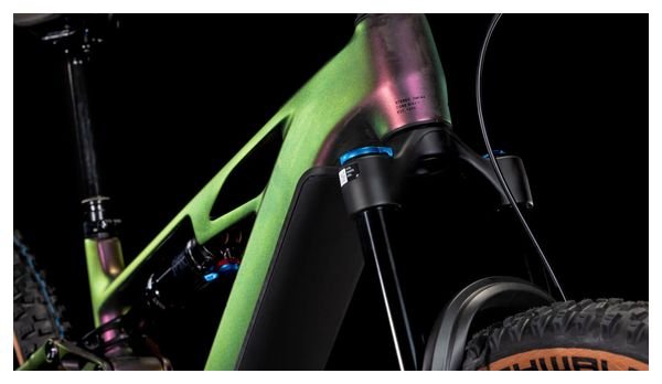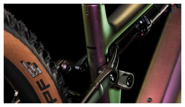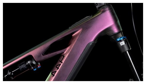 Un bon vélo est une question de détails, et le cadre du Cube Stereo Hybrid One44 HPC regorge de détails astucieux. Vous remarquerez le passage de câbles intégré, car il complète parfaitement les lignes épurées du triangle principal en carbone haute performance, tout en contribuant à réduire la maintenance. Le jeu de direction réglable vous permet d’adapter l’angle à vos besoins spécifiques. Un guide-chaîne Direct Mount maintient la chaîne bien en place, tandis que l’écran du tube supérieur Bosch, soigneusement intégré, vous montre en un coup d’œil des infos concernant le puissant moteur Bosch Performance Line CX et la batterie PowerTube de 800 Wh. Avec une fourche suspendue de 150 mm et un débattement arrière de 140 mm, il est prêt à affronter les sentiers les plus difficiles. La patte UDH signifie également qu’il est à l’épreuve du temps. Et, avec le système Size Split, vous avez une large gamme de tailles pour convenir à la plupart des pilotes.